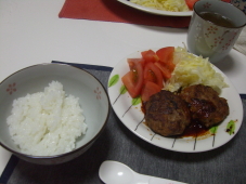 昨日の内にハンバーグは焼くだけのところまで作っておいた。