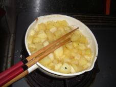 リンゴ2個を粗く刻んで砂糖適量をかけて煮る。