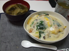 ぴよちゃん家の姫は特訓の成果が発揮できたかなぁ…。 オムライスとお味噌汁。 味噌汁の具は大根としいたけとワカメヾ(*´∀`*)ノ゛ オムライスは… ケチャップライスに卵を乗せて,ホワイトソースをかけたの♪ ホワイトソースの具はホウレン草とエビとシメジ☆ 余ったからまたコロッケにでもするか…( ´,_ゝ`)プッ なかなか上出来だったのに,とぅちゃんたら… 実家でカレーを食べて帰ってきたから3分の1程残したのよ(((((;`Д´)≡⊃)`Д)、;'.・ これは何に変身するでしょう??? |