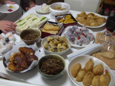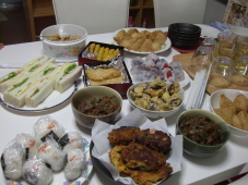 昨日から下準備を始めて,今日の集合時間になんとか間に合った♪ みんなで料理を持ち込むと本当に豪華になって嬉しかったなぁヾ(*´∀`*)ノ゛ キンピラとお稲荷さんと クッキーとイチゴ大福を作ったのは今朝だけど,はるっちょさんのつまみ食いの被害に遭う。 コロッケは一昨日のオムライスのソースの残りをコロッケにしたものだから簡単☆ みんなが帰った後,はるっちょさんがお稲荷さんをかなり食べつくした…(i|!゜Д゚i|!) |