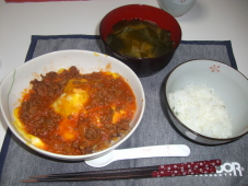 新しいフライパンを買ってきて早速。。。 卵はうまく焼けたけど乗せるのに失敗(;´д` ) トホホ そんな訳で ミンチの残りとたまねぎを炒めて,湯剥きトマトの微塵切りを混ぜて。。。 醤油・みりん・おたふくソース・ケチャップで味を調えてミートソースを作ってみた。 それをかけたら アラが隠れちゃった゜+。:.゜ヽ(*´∀`)ノ゜.:。+゜ 残りのミートソースは明日のスパゲティに回そう(´・ノд・`)コッソリ オムレツにたまねぎとワカメの味噌汁に白ご飯☆ |