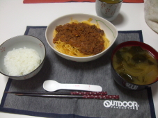 今日は昨日のミートソースを使って。。。 |