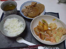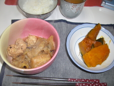 はるっちょさんの風邪も大分よくなってきたし,そろそろネギ生姜期間は終わりかと思ったら,今度はとぅちゃんが風邪気味にヾ(*`Д´*)ノ そんな訳で今日もネギと生姜たっぷりの白菜の煮物。 前の大根の煮物の白菜バージョンで,味は醤油とみりんのみ。 ちょっと生姜が多かったみたいで,やや刺激的な味。 かぼちゃの煮物はなかなかのできで,はるっちょさんはお代わりをねだってくれた(´,_ゝ`)プッ かぼちゃは水から出しジャコと一緒に煮るだけ。 味付けは砂糖と醤油とみりんを適当。 |