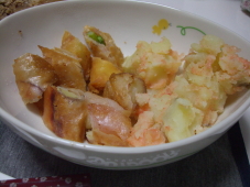 今朝食べた食パン♪ ホームベーカリーは大活躍( ´艸`)ムププ 今回は久し振りに生地にチョコを混ぜてマーブル食パンにしてみた☆ 焼けたまま放置するとケースから取り出しにくいから,焼けてすぐにマーガリンを周りにつけるの。 そうすると,パンもしっとりするし,ケースから取り出しやすい (,,・`ノ。・´)コッソリ 今日の夕飯は。。。 昨日の残りの大根に春巻きにタラコイモ<(´∀`)/ 春巻きの具は,ハムにチーズにジャガイモと,ハムにチーズにアスパラの2パターン☆ タラコイモは,水分がなくなるまで茹でたジャガイモにトロケルチーズとほぐしたタラコを乗せて鍋を振ったら出来上がり☆ はるっちょさんもこれは最近お気に入りらしい。。。 |